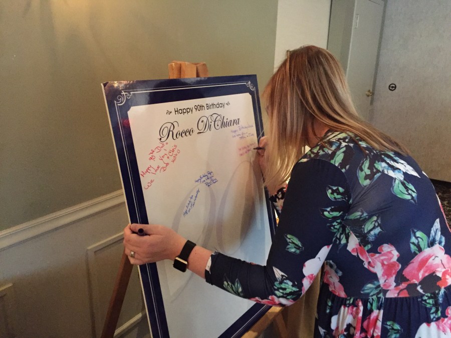Lindsey writing a message for Poppa